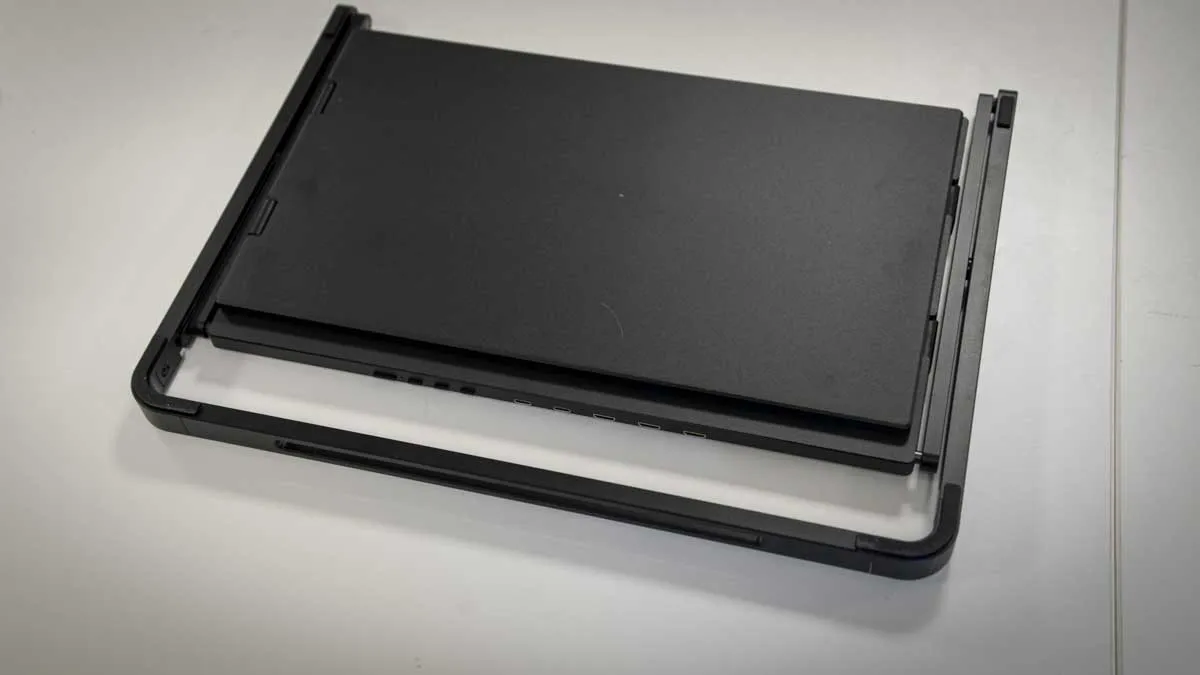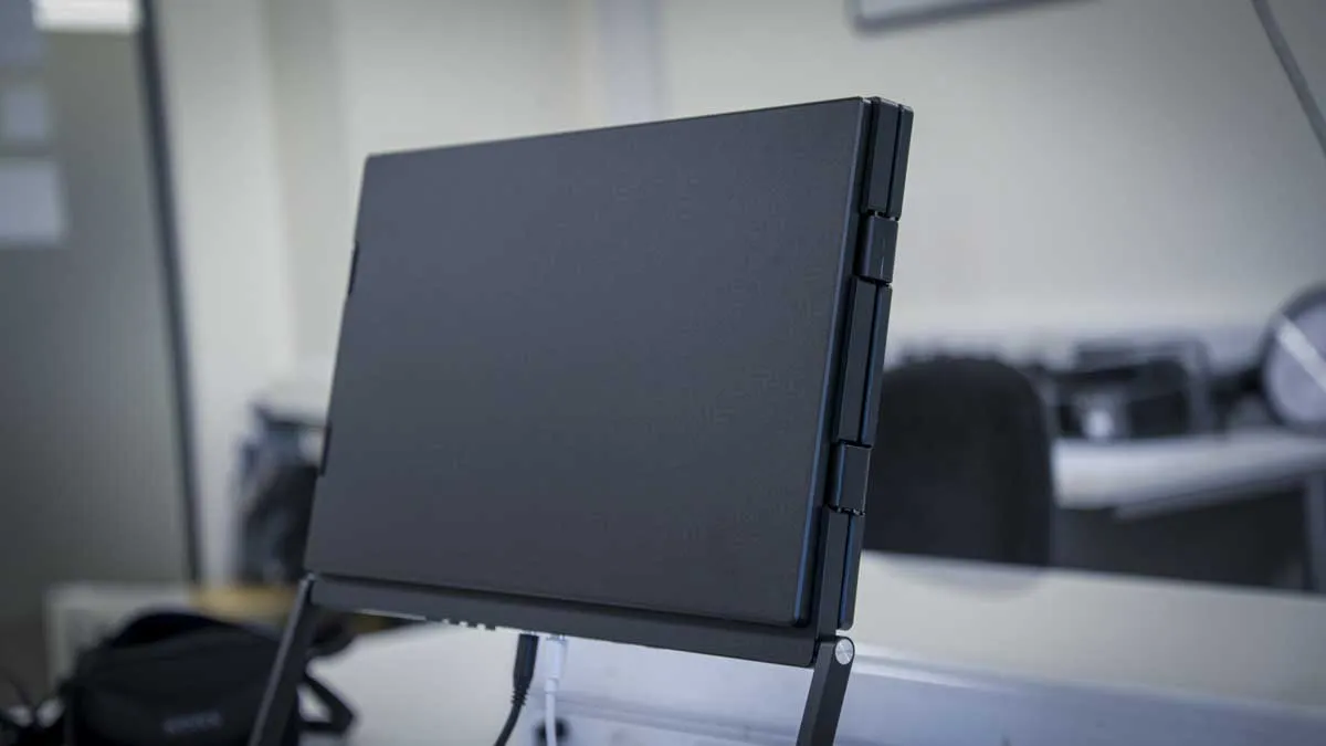 我唯一担心的是,虽然两个显示器可以向内折叠保护,但第三个显示器却折到背面,基本上暴露在外。有点遗憾的是,没能设计出某种机制,让三个显示器都朝内,而不是让一个朝外,暴露在携带过程中可能遇到的撞击或冲击之下。