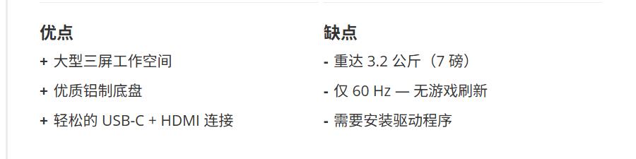 总体而言,在使用中,尽管需要外部电源和驱动程序安装,但 Aura Triple Aero 15.6 Pro Max 是三屏系统方面最好的便携式显示器之一,其高品质使其非常适合商务和创意用途。