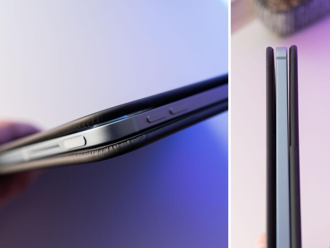 Flip Folio 有两种尺寸,分别兼容 11 英寸和 13 英寸的 iPad Pro 和 Air,我用 13 英寸的 Air 进行了测试。如果我将保护壳对准 iPad 的一角,它会卡在摄像头凸起处。但如果我将切口对准摄像头凸起处,保护壳就会悬垂在另一侧。再加上缝隙和其他一些小质量问题,例如保护壳弯曲处看起来很乱的折痕,总的来说,这款保护壳有点令人失望,尤其是考虑到它的价格。