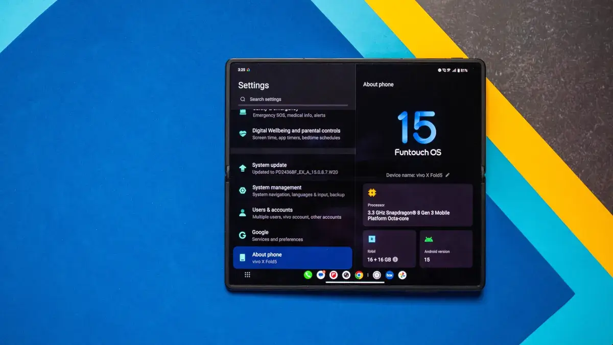 X Fold 5 运行基于Android 15 的Funtouch OS 15 ,但它没有预装Android 16 ,这让我很恼火。三星已经成功在其折叠屏手机上预装了 Android 16,我不明白为什么 Vivo 做不到。另一个令人头疼的问题是,X Fold 5 只会获得四个 Android 系统更新以及五年的安全更新,而谷歌、三星和荣耀都提供了七年的安全更新,这显然不够。